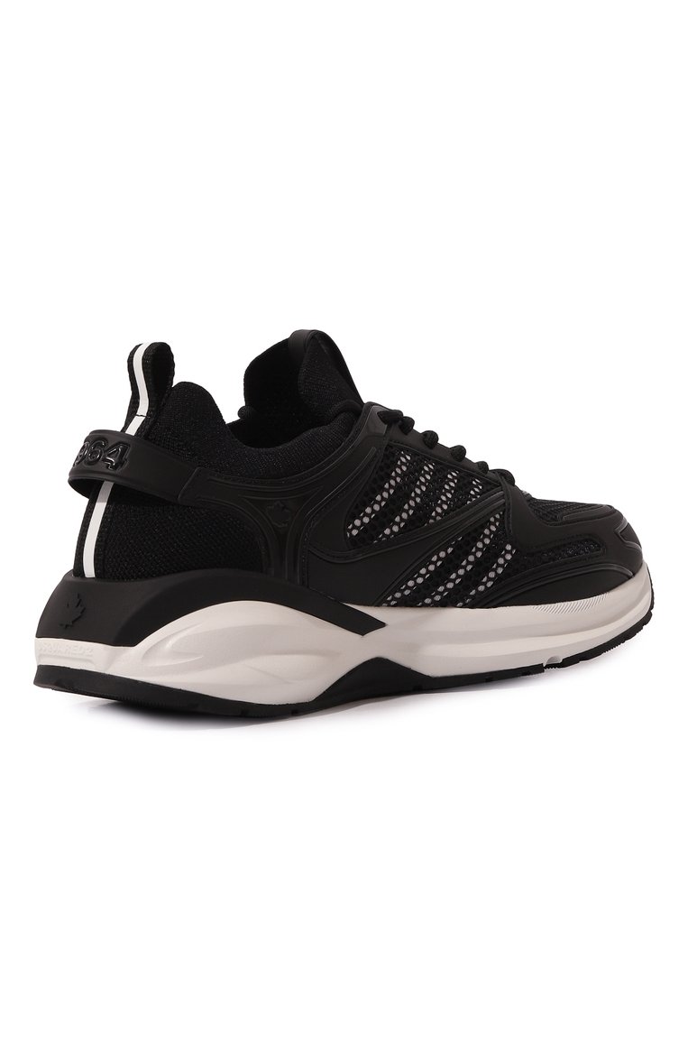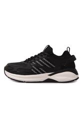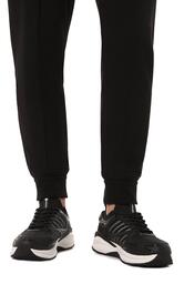 Черно-белые легкие кроссовки Dash изготовили из эластичной дышащей сетки и тонкого прочного полимера, напоминающего матовую кожу. Пару установили на скульптурную динамичную подошву, как у беговой обуви, которая хорошо амортизирует. Задник украсили тисненой цифрой 1964 — годом рождения братьев Кейтенов, а на язычке и по бокам расположили изображения кленовых листьев.