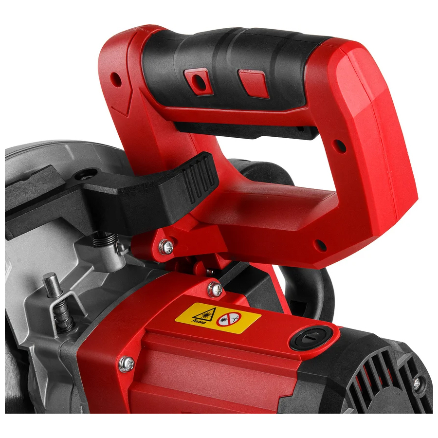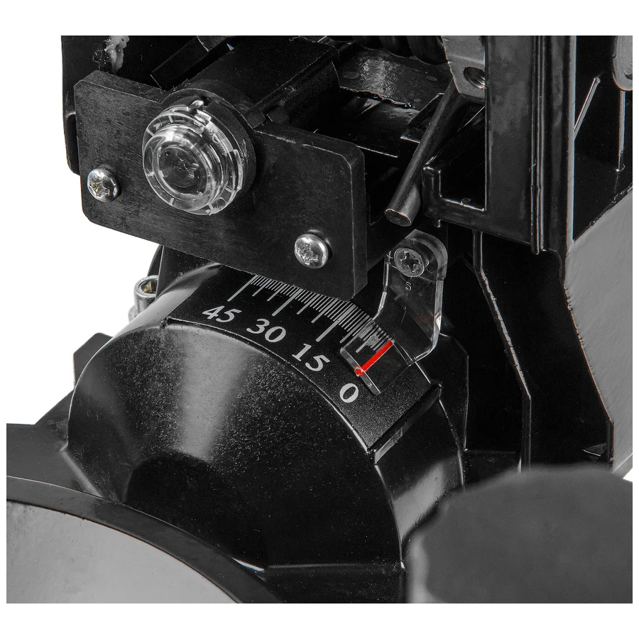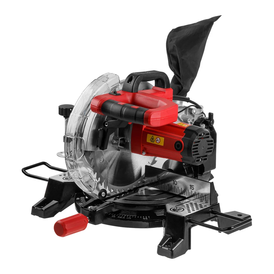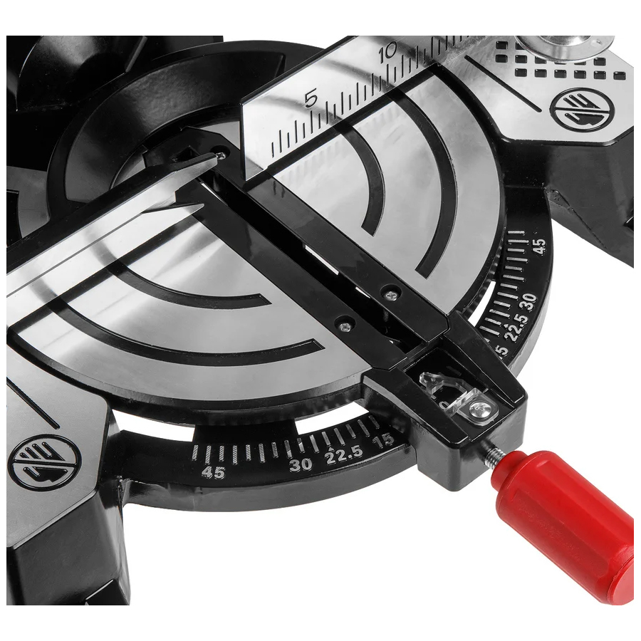 Пила сочетает в себе оптимальный набор функций для удобной и быстрой работы. Имеется система пылеудаления, лазерный указатель для более точного реза, система удобного зажима заготовки, точный рез. Быстрая регулировка глубины и ширины реза. Мощный 1500 Вт двигатель обеспечивает комфортную и продуктивную работу. А наличие ребер жесткости в основании придает дополнительную мощность конструкции, что очень важно для торцовочной пилы. Кроме того, пила оснащена удлинительными опорами для обработки длинных заготовок.