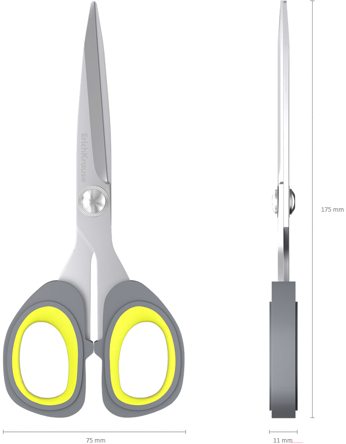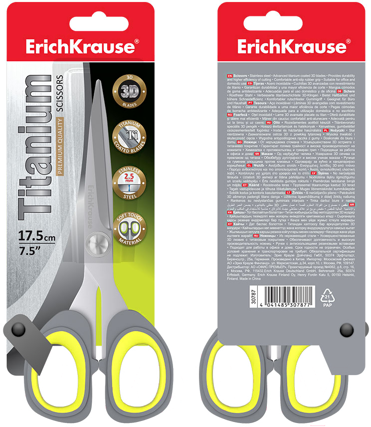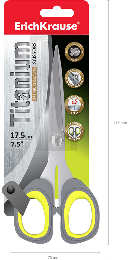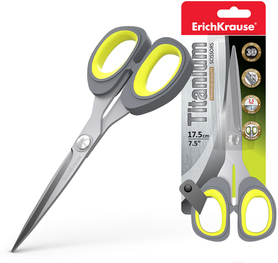 Ножницы канцелярские Erich Krause Titanium / 30787; Особенности: резиновые вставки; Длина ножниц: 17.5 см; Ширина ножниц: 7.5 см; Толщина лезвия: 2.5 мм