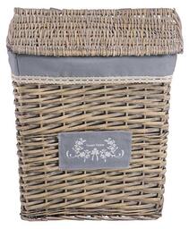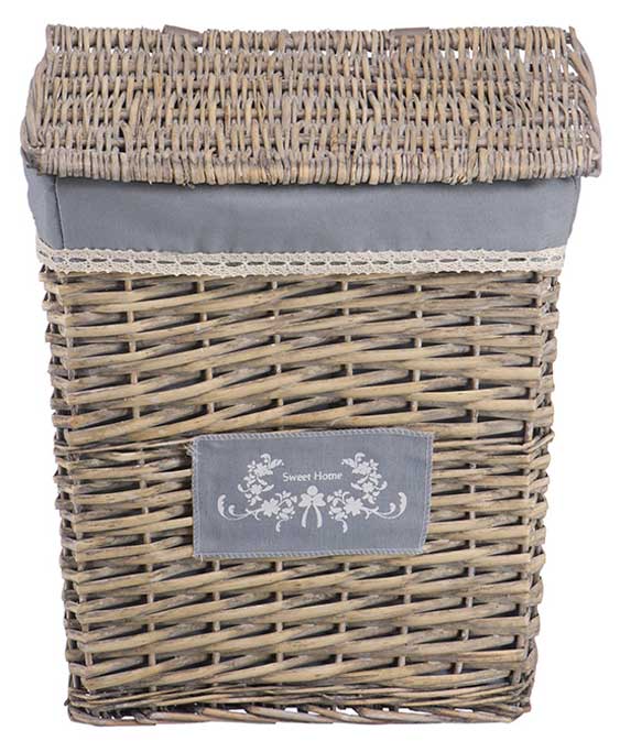 Плетеная бельевая корзина прямоугольной формы с крышкой станет прекрасным дополнением интерьера. Чехол из ткани легко снимается и стирается. При изготовлении корзины используются только натуральные материалы. Поверхность обработана водоотталкивающим и антибактериальным покрытием, поэтому корзину можно использовать в ванных комнатах. Материалы изготовления корзины: лоза ивы, ткань.