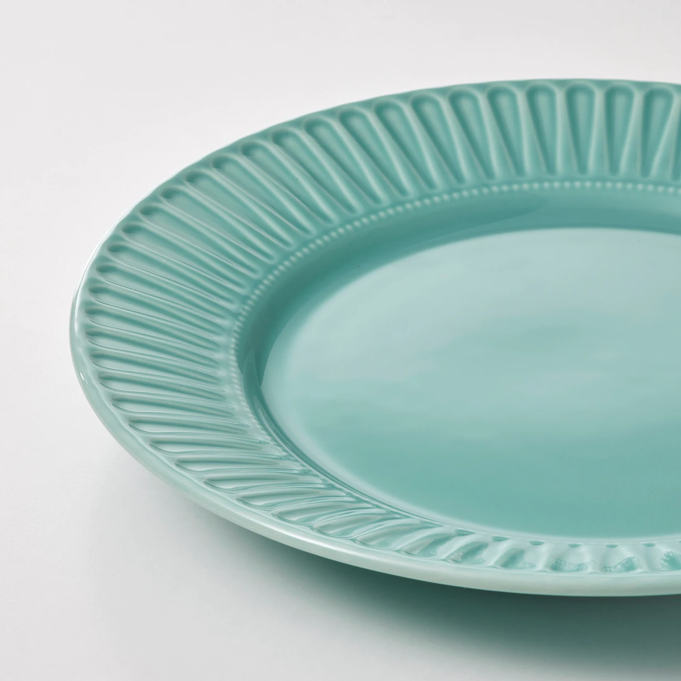 Сделать сервировку стола яркой помогут бирюзовые тарелки СТРИММИГ. Их можно комбинировать с товарами этой же серии или с другой посудой из каменной керамики.