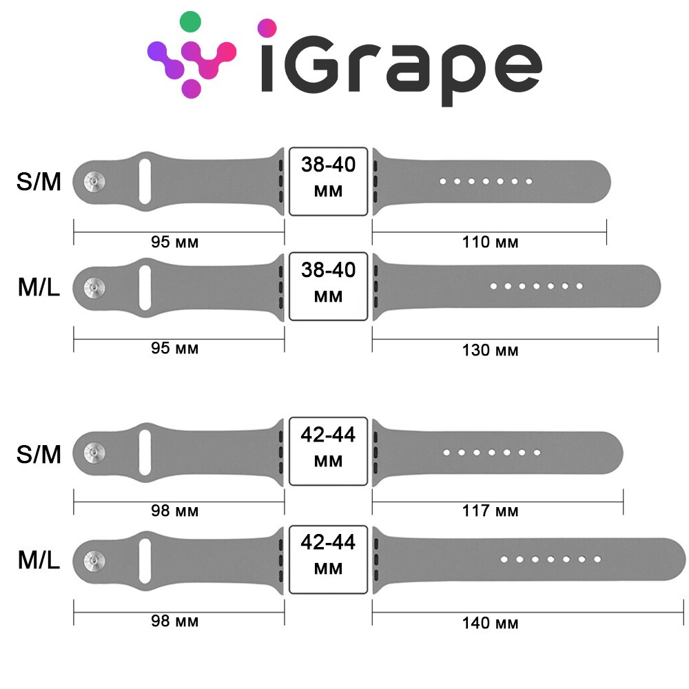 Независимо от температуры ремешок сохраняет эластичность. Качественная обработка поверхности защищает от дискомфорта во время ношения часов. Длина изделия регулируется зависимо от ширины запястья. Благодаря этому можно легко заниматься повседневными делами, не отвлекаясь на раздражители. Приобрести cиликоновый ремешок для Apple Watch 42-44 мм, M/Lможно в магазине «iGrape» по доступной цене.