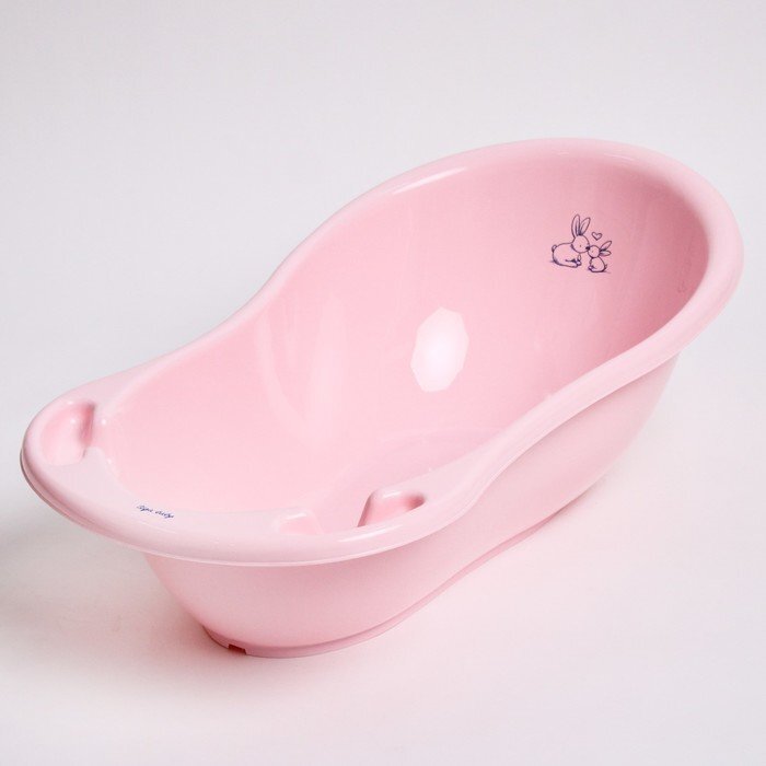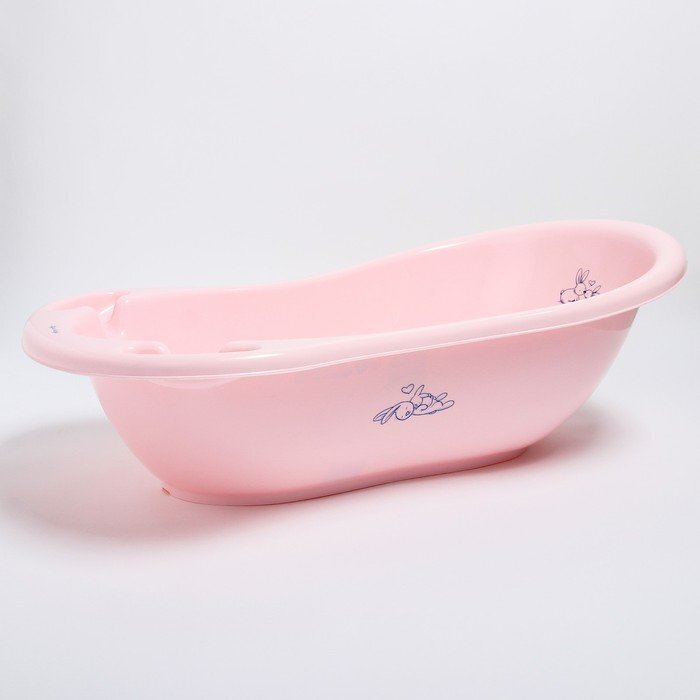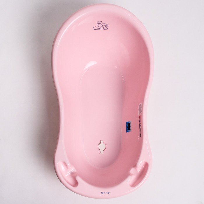 Ванна детская "Кролики" со сливом и термометром, 86 см, цвет розовый