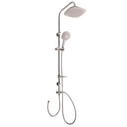 Колонна для душа Invena ELEA AU-82-001 дополнит интерьер ванной комнаты. В модели предусмотрен подвижной верхний душ 20x20 см белого цвета с серыми форсунками. Максимальный комфорт обеспечит 3-х режимная широкая лейка, мыльница и держатель. В комплект входят: шланг душевой с двойной оплеткой 150 см, шланг для подключения смесителя 60 см. Монтируется на стену при помощи кронштейна.
