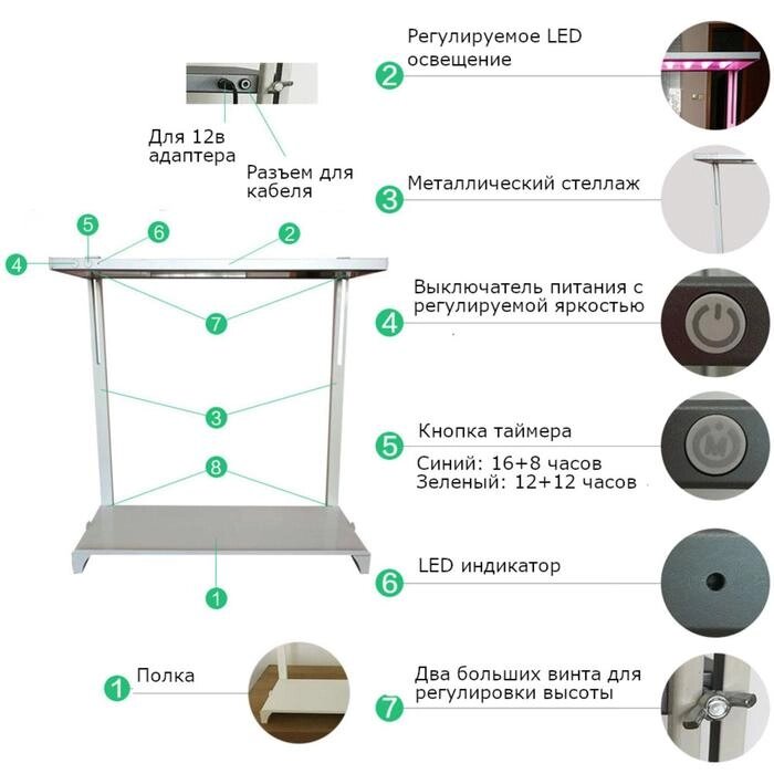 Гидропонная установка HobbyFarm 8 ячеек с фитолампой
