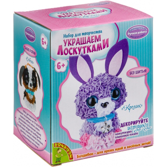 Набор для творчества BONDIBON ВВ2815 Украшаем лоскутками. КроликНабор для творчества Украшаем лоскутками от BONDIBON позволит ребенку своими руками декорировать оригинальную игрушку лоскутками плюшевой ткани. Для этого вдавливайте лоскутки стилусом в форму. Украсьте игрушку аксессуарами и деталями. В наборе плюшевые лоскутки 5 цветов, аксессуары глаза, нос, ошейник, уши, стилус.