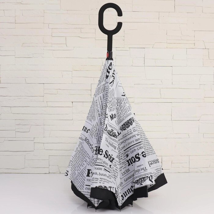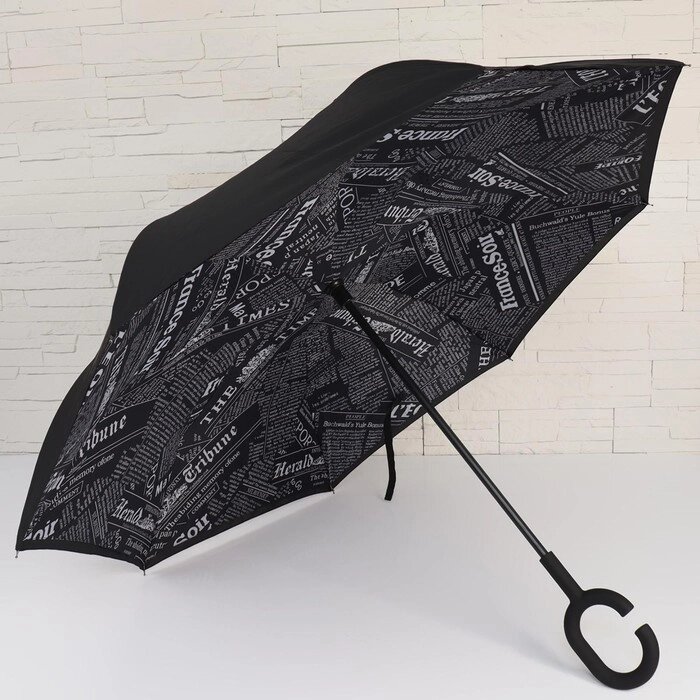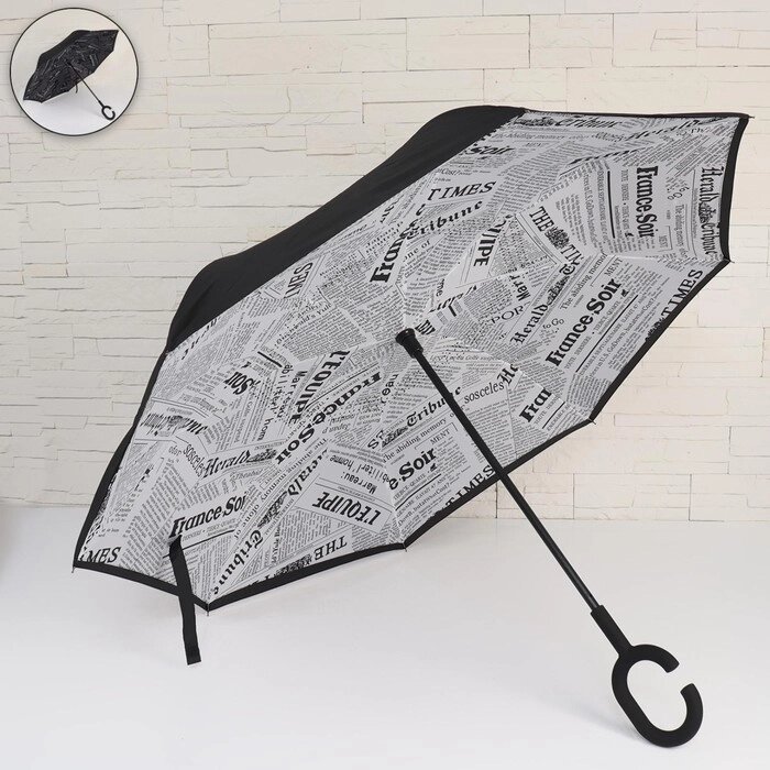 Зонт-наоборот, механический «Газета», 8 спиц, R = 53 см, ручка кольцо, цвет МИКС