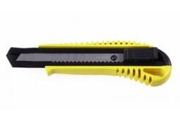 Нож MASTER STAYER 0914 используется при строительных работах и легко режет бумагу, картон и подобный материал благодаря остро заточенному лезвию. Корпус изготовлен из прочного пластика. Кнопка на выдвижение работает и на фиксацию лезвия. Затупившийся сегмент легко обламывается. Лезвие из инструментальной стали долго сохраняет свои режущие свойства.