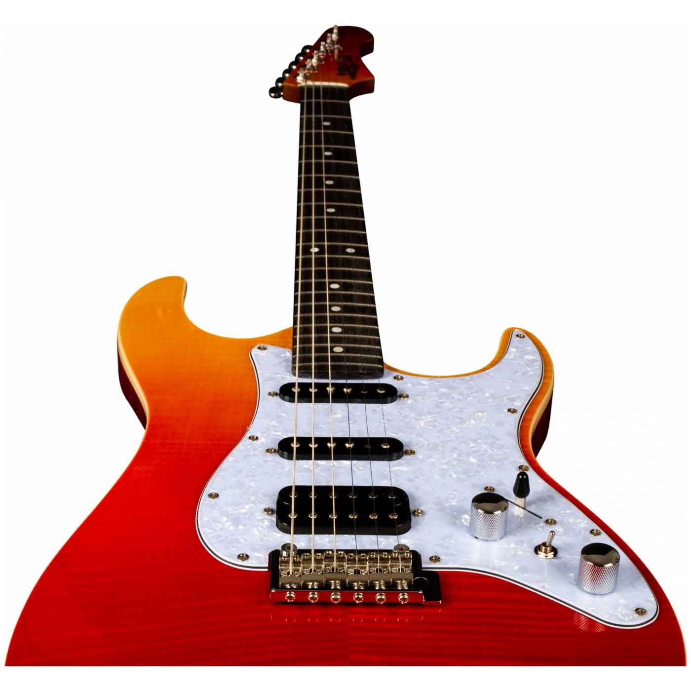 JET - это новый бренд электрогитар, созданный чтобы удовлетворить музыкантов всех уровней и способностей. Вдохновленные классическими электрогитарами высочайшего класса, гитары JET предлагают современный подход к дизайну и стилю со свежим и впечатляющим выбором цветов, отделки и высококачественной древесины. Самое главное, гитары JET дадут вам превосходные впечатления от игры по доступной цене.. У инструментов JS-600 профиль грифа - Modern C. Это наиболее распространенный современный профиль грифа, у таких грифов удобный овальный профиль, который подходит для большинства стилей игры. Серия 600 – корпус выполнен из махогани для более теплого звучания, а верхняя дека из огненного/тигрового клена (flame maple) с красивым полосатым рисунком волокон. Рисунок также напоминает языки пламени, за что и получил одно из своих название. Полоски могут быть разной ширины и плотности: более сжатыми и узкими, и наоборот довольно широкими.