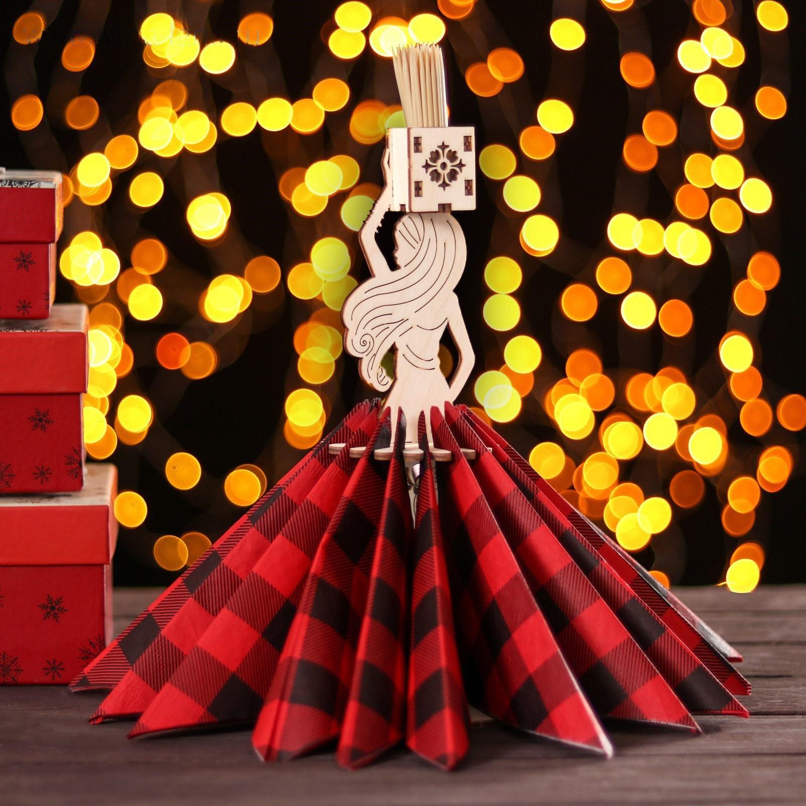 Салфетница деревянная «Индийская красавица», с подставкой под зубочистки, 25×13×13 см 5019160