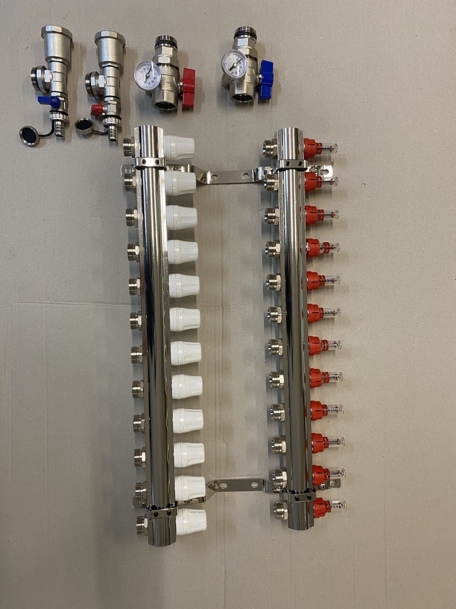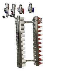 Распределительные коллекторы предназначены для использования в системах водоснабжения: радиаторного или напольного отопления (теплый пол) для распределения и регулирования рабочей среды в системе. Каждая труба системы радиаторного или напольного (теплый пол) отопления подключается к распределительному коллектору, что позволяет осуществлять регулировку и контроль потока теплоносителя индивидуально в каждом циркуляционном контуре.