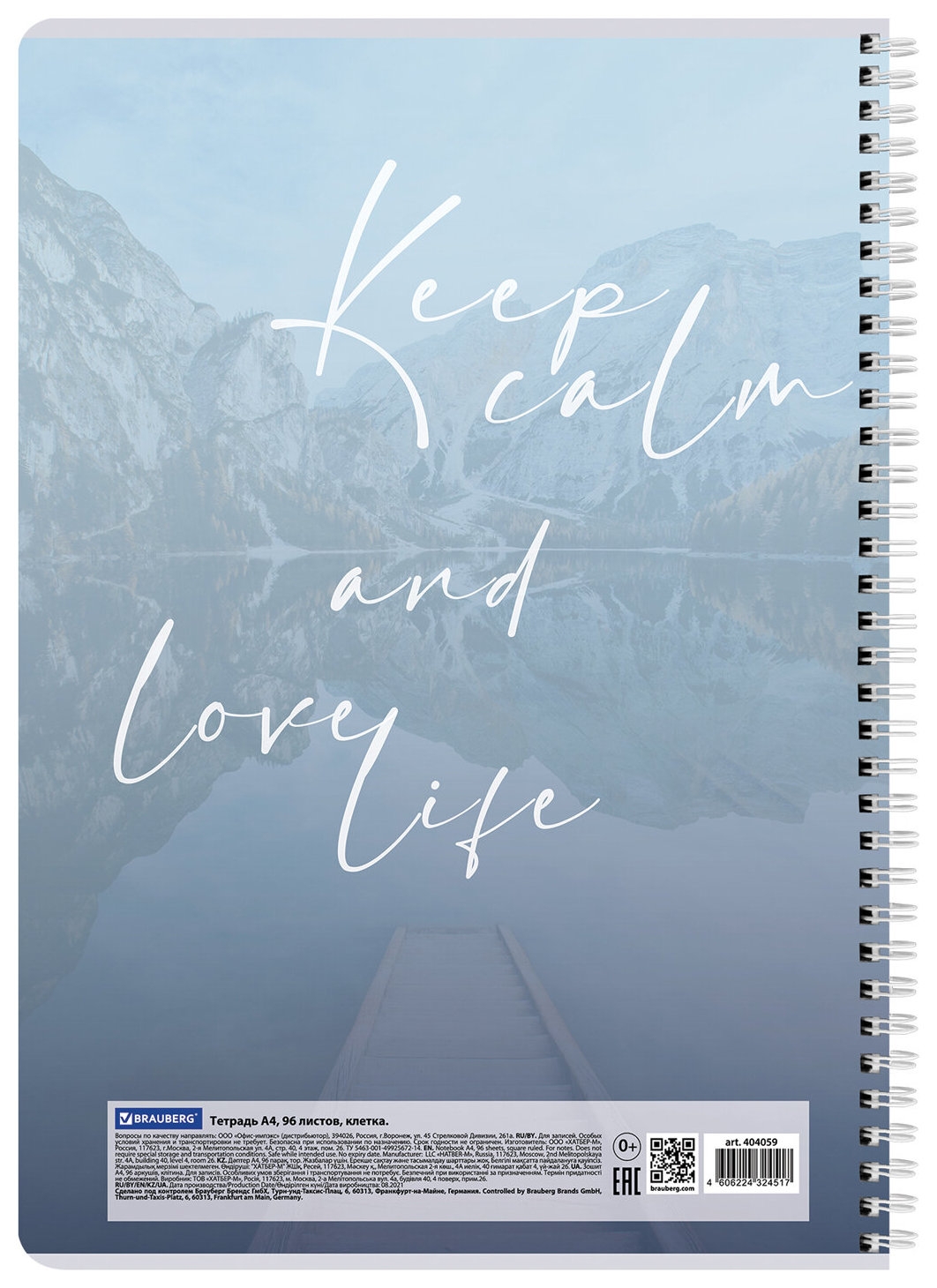 Тетрадь А4, 96 л., Brauberg, гребень, клетка, обложка картон, "Calm", 404059