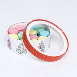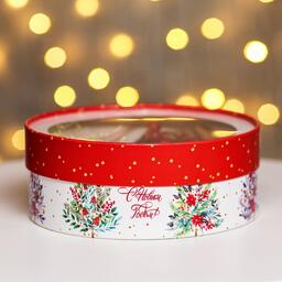 Коробка для макарун тубус с окном "Новогодние ёлочки" 21 х 21 х 8 см