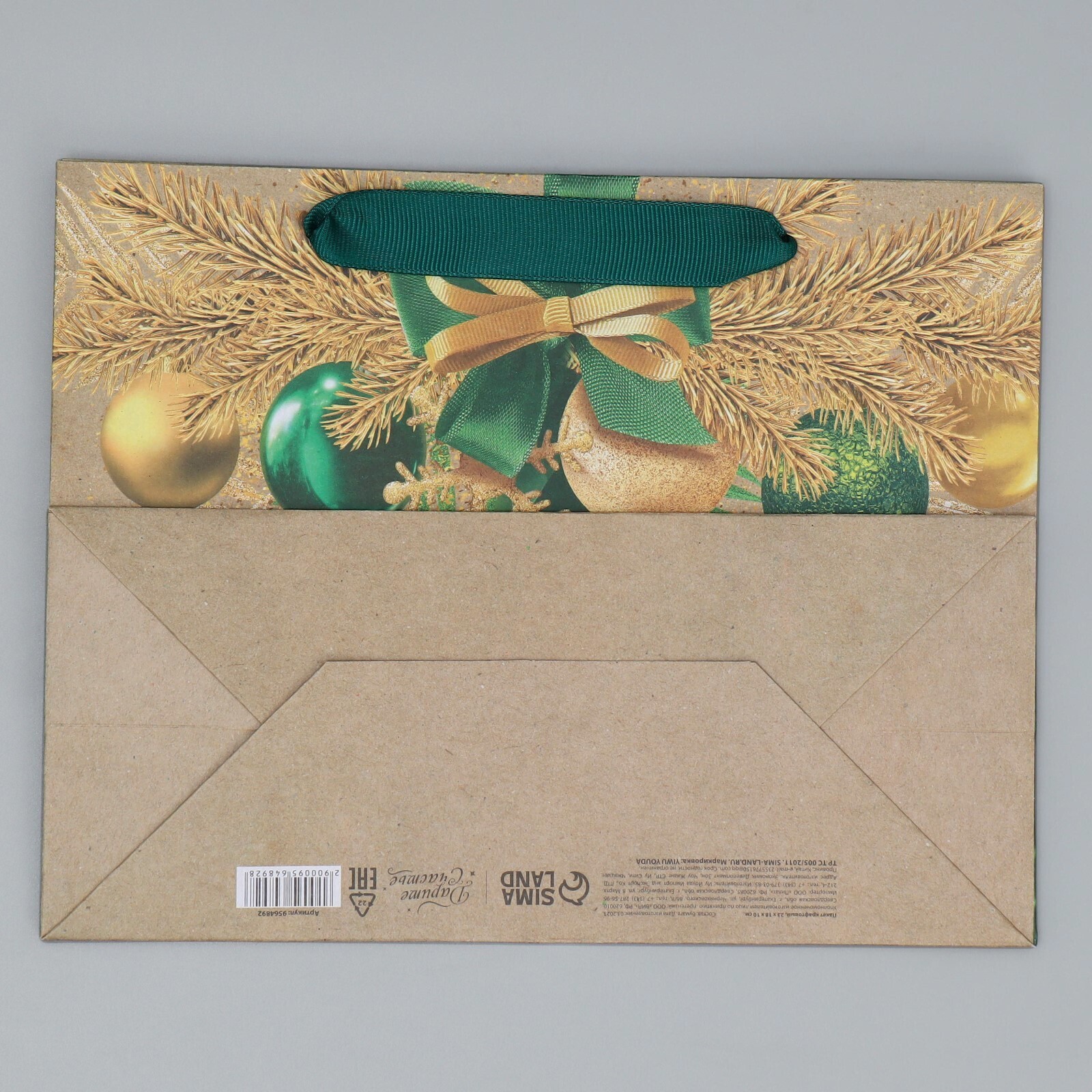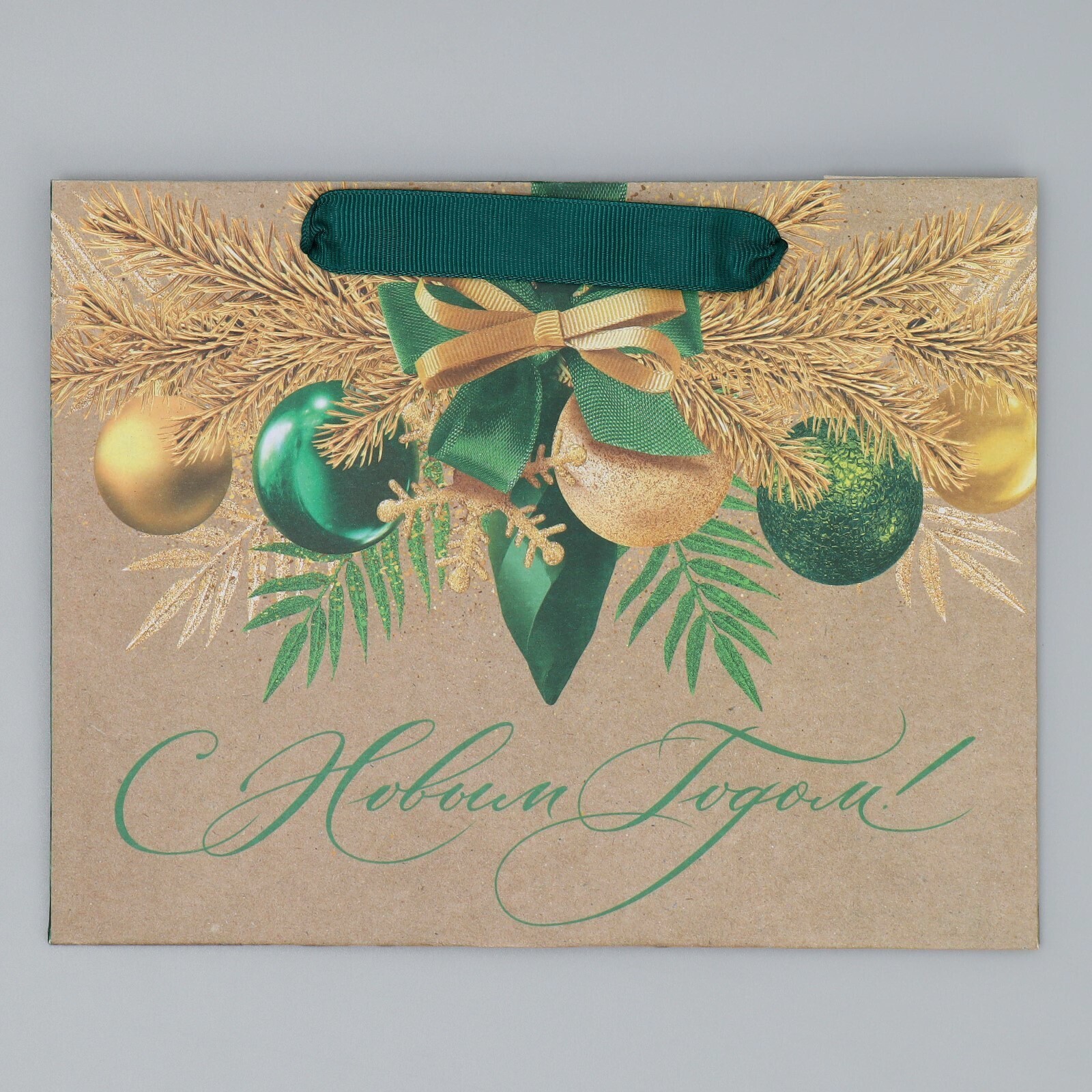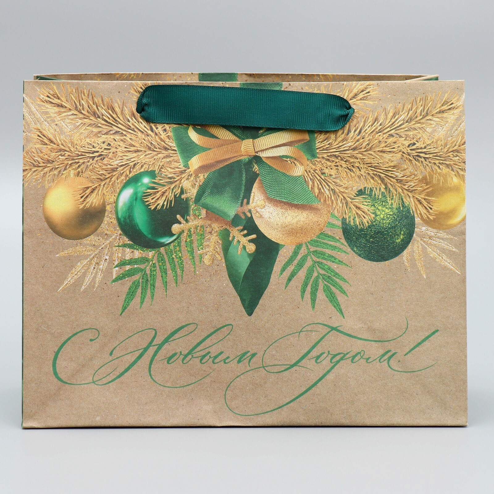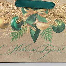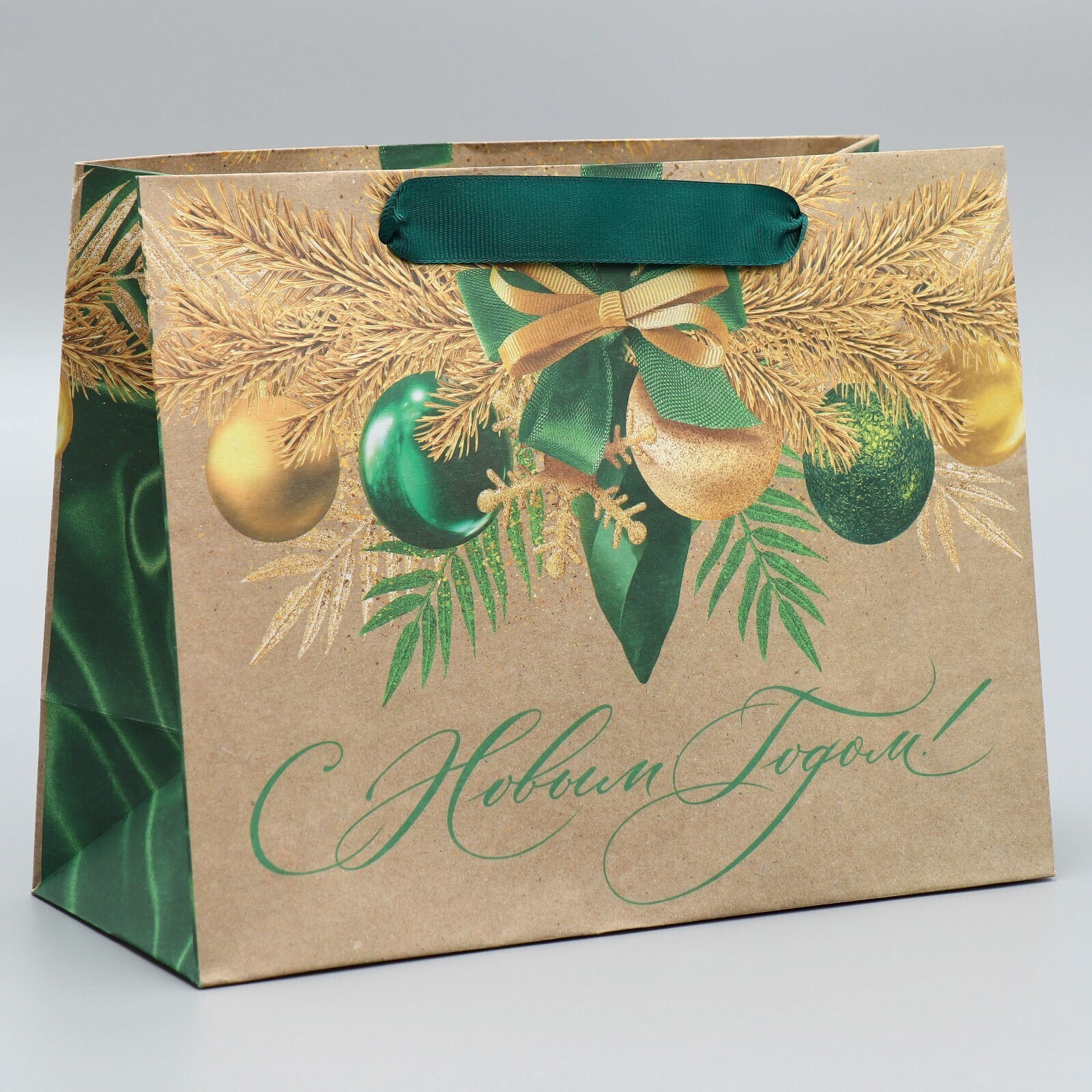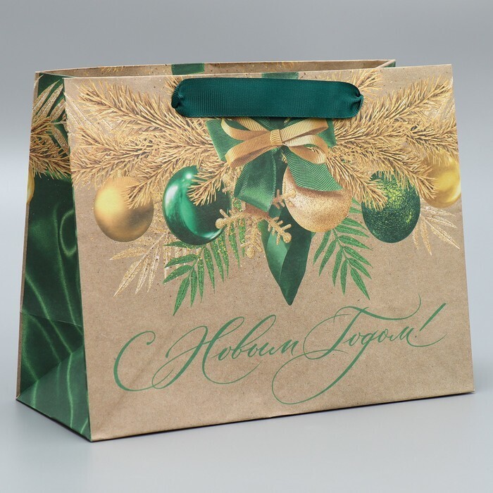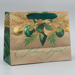 Пакет крафтовый горизонтальный «Новогодний изумруд», MS 23 × 18 × 10 см