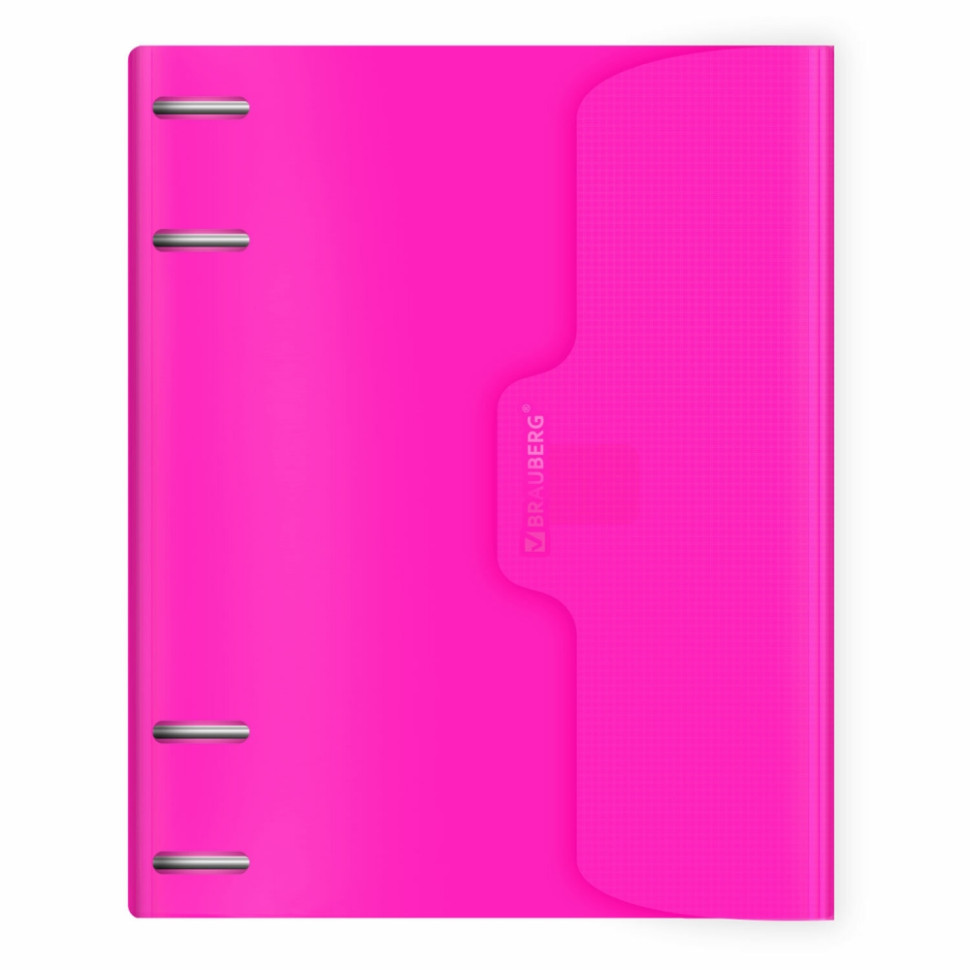 Тетрадь на кольцах А5 175х220 мм, 120 л., пластик, на липучке, с разделителями, BRAUBERG, Розовый, 404635
