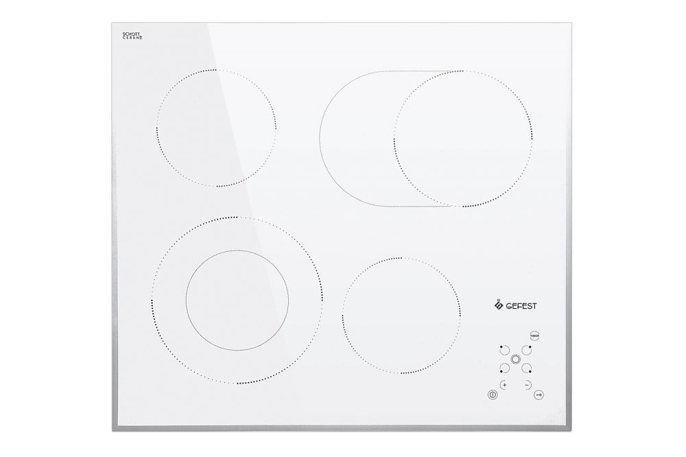 Электрическая варочная поверхность Gefest СН 4231 K12 оборудована специальными скоростными элементами Hi-Light (4 конфорки). Электрическая варочная поверхность управляется сенсорами. Мощность регулируется ступенчато. Модель оснащена индикатором работы и остаточного тепла (4 штуки). Последние помогают визуально оценить, какая из конфорок не успела остыть. Деактивация индикаторов происходит, когда температура рабочей поверхности становится тактильно безопасной.