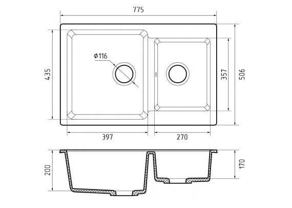 Мойки ТМ GRANFEST обладают высокой механической прочностью благодаря высокотехнологичному производству литья материала, 80% составляет натуральная мраморная крошка и 20% экологически чистого связующего элемента. Прочность изделий сравнима с прочностью натурального гранита.