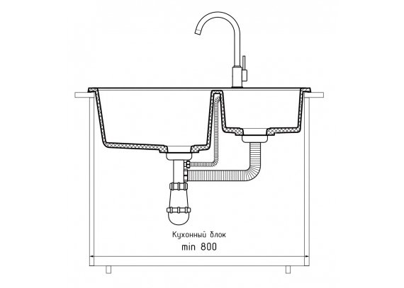 Мойка из искусственного камня (литьевой мрамор), врезная, прямоугольная, сифон в комплекте.