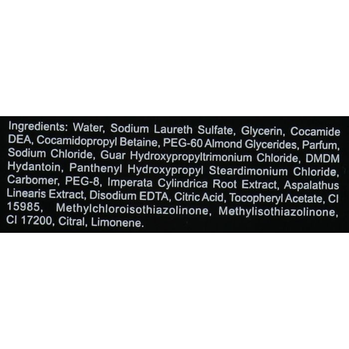 - Склад Water, Sodium Laureth Sulfate, Glycerin, Cocamide DEA, Cocamidopropyl Betaine, PEG-60 Almond Glycerides, Parfum, Sodium Chloride, Guar Hydroxypropyltrimonium Chloride, DMDM Hydantoin, Panthenyl Hydroxypropyl Steardimonium Chloride, Carbomer, PEG-8, Impera