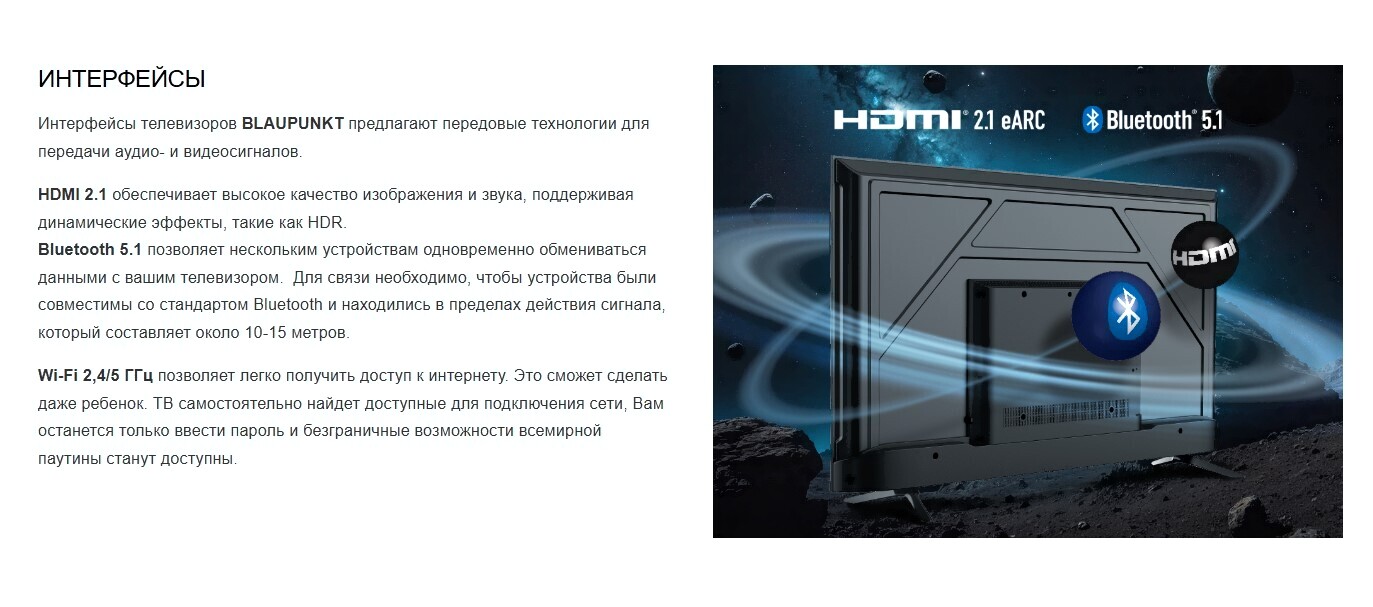• Входы/выходы USB, CI/CI+, RJ-45 (LAN), S/PDIF (оптический), аудиовыход 3.5 мм, антенный вход (RF)