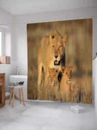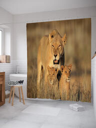 Штора (занавеска) для ванной "Львиные заботы" из ткани, 180х200 см с крючками