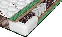 Матрас Askona Terapia Cardio 90x186; Двусторонний матрас: есть; Конструкция: симметричный; Степень жесткости: средний; Материалы: кокосовая койра, пеноматериал; Макс. нагрузка на одно спальное место: 140 кг; Базовый блок матраса: песочные часы Extra (Askona)