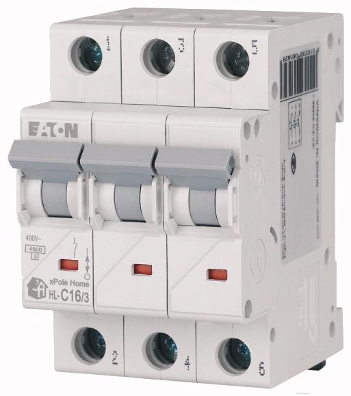 Выключатель автоматический Eaton HL-C16/3 3P 16A C 4.5кA 3M / 194791; Номинальный ток: 16 A; Характеристика срабатывания (кривая тока): C; Номин. отключающая способность: 4.5 кА; Количество полюсов: 3