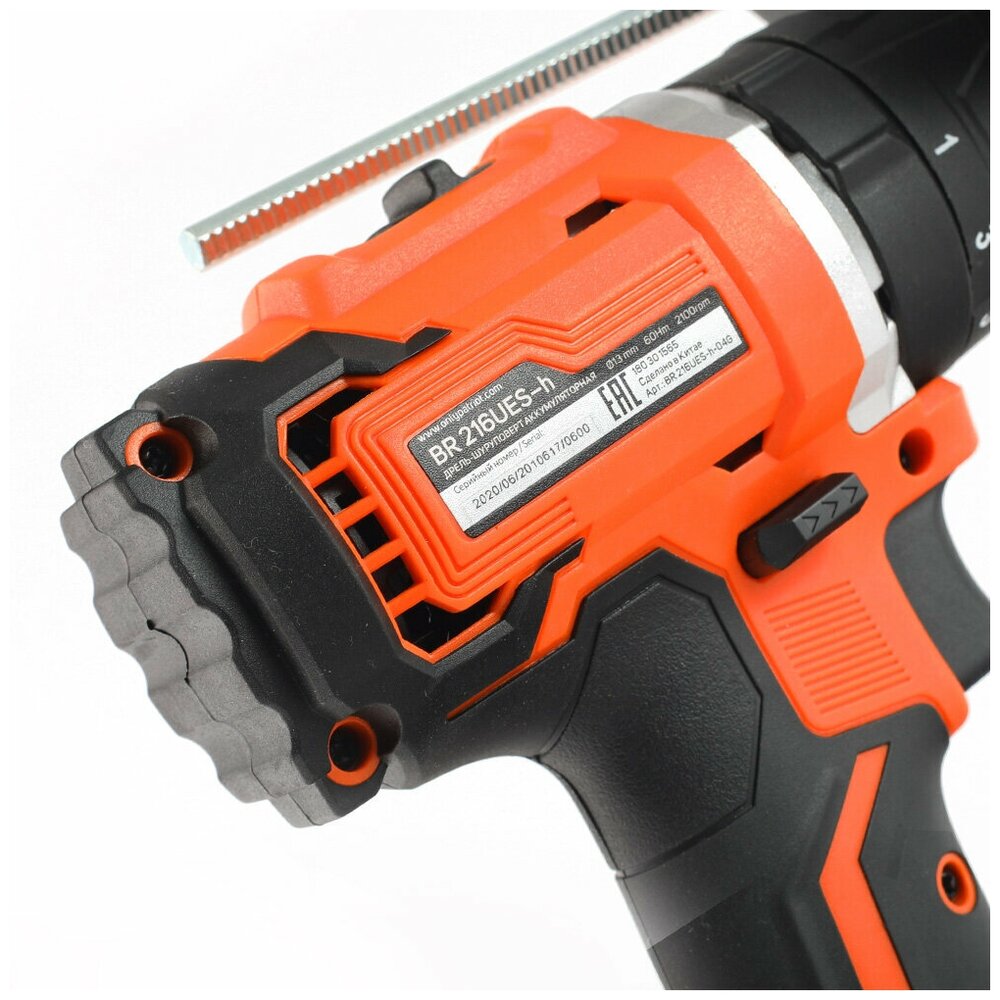 BR 216UES-h незаменим на строительной площадке, в автомастерской, при монтажных работах. Редуктор с износостойкими металлическими шестернями обеспечивает высокий ресурс шуруповерта. Инновационный, износостойкий, бесщёточный двигатель выдерживает высокие нагрузки по крутящему моменту без потерь при регулировке скорости, обладает одинаковой мощностью в обоих направлениях. Дополнительная эргономичная рукоятка необходима для повышения точности и надежного удержания инструмента во время работы с крупной остнасткой при высоком крутящем моменте. • UES – единая аккумуляторная платформа, позволяющая подключаться к разным инструментам и устройствам. • Бесщёточный двигатель. • Клипса для крепления на поясе. • Режим удара. • Дополнительная рукоятка. Бесщеточный шуруповерт с функцией удара. Скорость: 2; 1 скорость: 0-400; 2 скорость: 0-2100; Тип патрона: быстрозажимной; Емкость аккумулятора: 4,0 Ач; Быстрая зарядка за 1 час: +; Количество регуливовок крурящего момента: 19+1+1; Мягкий крутящйи момент, Нм: 50; Жесткий крутящий момент, Нм: 60; Диаметр патрона: 13мм; Режим удара: +; Бесщёточный мотор: +; Тормоз мотора: +; Блокировка шпинделя: +; Реверс: +; Подсветка: +; Индикатор заряда батареи: +; Прорезиненная рукоятка ExtraGrip: +;
