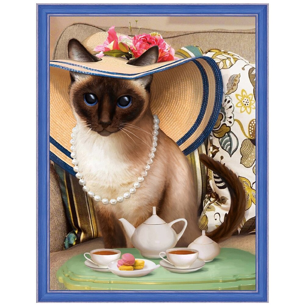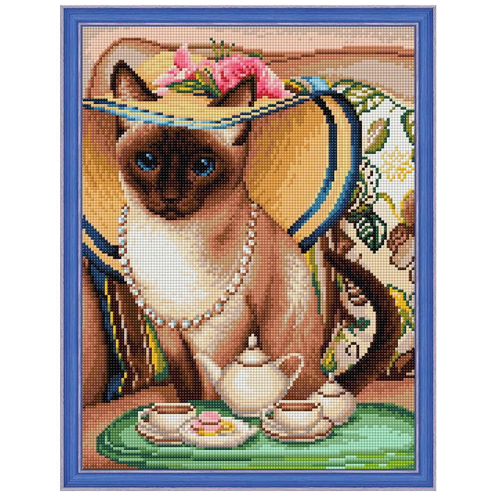 Алмазная живопись Набор алмазной вышивки Чаепитие у кошки (АЖ-1729) 30х40