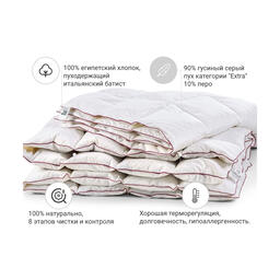 Здоровий сон пух. Жоден з наповнювачів не зрівняється за унікальними властивостями натурального пуху. Пух, який використовується при виробництві постільної білизни MirSon, виключно високої якості, що гарантує неперевершений результат: пухнасті, легкі, теплі, абсолютно без запаху і пилу, антиалергенні подушки і ковдри.Тканина батист. Батист — тканина складається зі 100% міцної єгипетської бавовни, яка надає м'якість, легкість, ніжність та дійсно королівський вигляд виробам. Має гладку поверхню, що виключає роздратування шкіри, володіє дивовижною терморегуляцією та підтримує комфортний мікроклімат у ліжку, не створює парникового ефекту.Наповнювач 100% пух "DeLuxe White". "DeLuxe White" 100% пух - це елітний білий гусячий пух прижиттєвого обскубування птиці. Основною унікальністю даного пуху є безпосередньо самі пушинки, які дуже великі, мають цільну структуру, не перебиті, дуже пружні і мають максимальний клас чистоти.Класифікація пуху. Спосіб пошиття ковдри (Hand Made). Унікальне відношення до найдрібніших деталей, світові стандарти якості, контроль на всіх етапах виробництва — все це Hand Made. Два товари можуть бути візуально схожі один на одного, але обов'язково знайдуться відмінності, що притаманні ручній роботі, так би мовити почерк майстра.