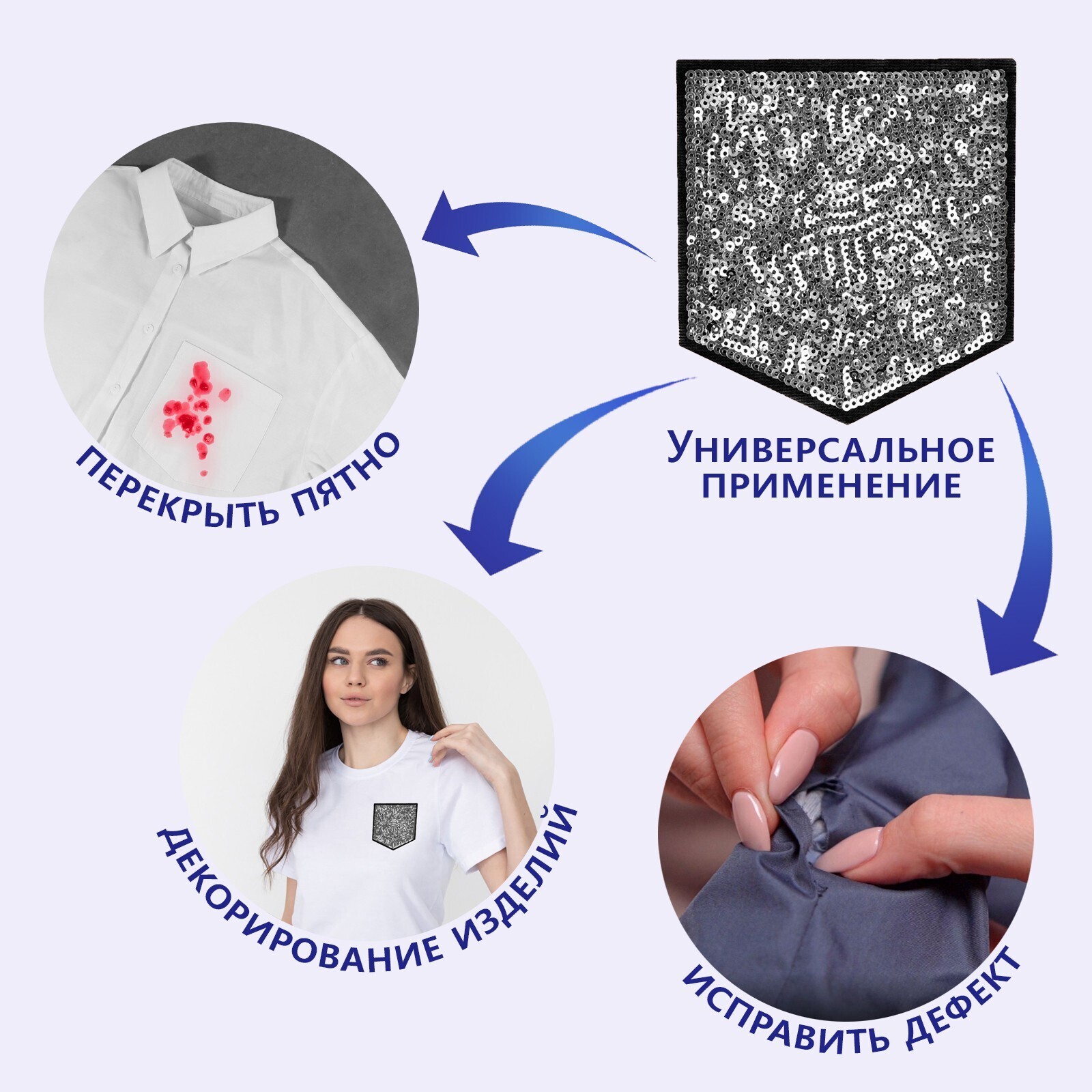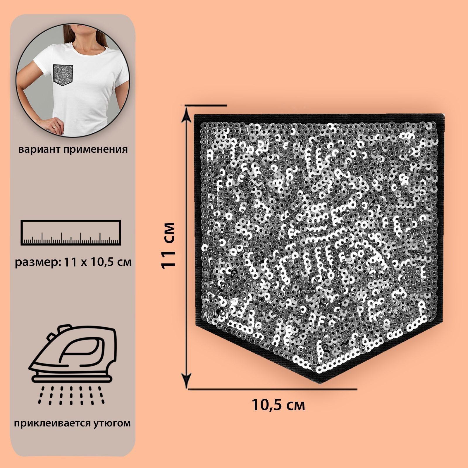 Термоаппликация «Карман», с пайетками, 11 × 10,5 см, цвет серебряный/чёрный 4338580